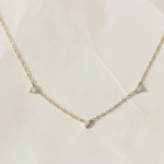 This timeless and modern diamond necklace is crafted from 14 karat Solid Gold holding three round brilliant Diamonds. The fine necklace measures 45 cm.